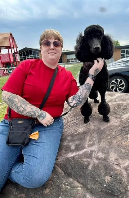 In 2022, Ashley was able to get her dream dog - a standard poodle which she named Freyja. Freyja has excelled in obedience, parkour, scent work, farm dog, trick dog, home manners, fit dog, and so many other sports/activities she’s tried.